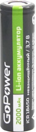 Аккумулятор GoPower 18650 2000mAh Li-ion 3.7V (без защиты, плос.конт)