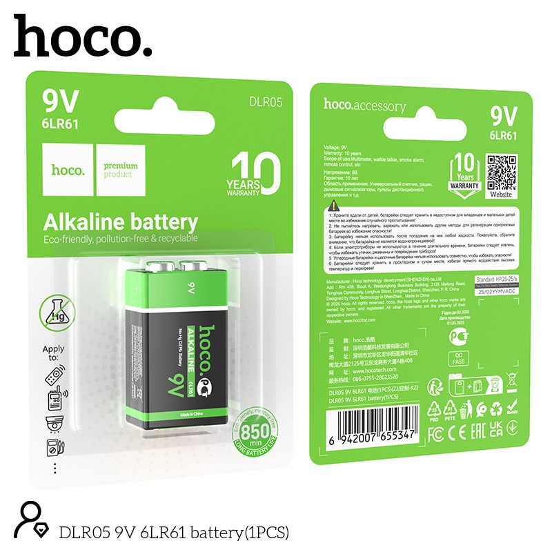 Батарейка Hoco 6LR61 BL1 (крона) 1/12