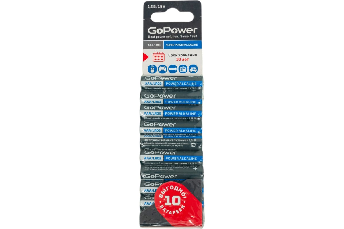 Батарейка GoPower Power Alkaline LR03 (AAA) BL10 10/60/360