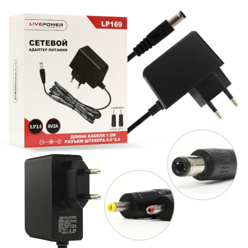 Блок питания - 6V/2A Live-Power LP169 (5.5*2.5) + 2 переходника (4.0*1.7/3.5*1.35)