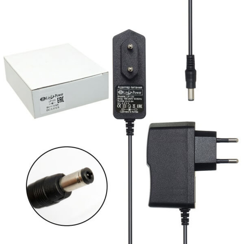 Блок питания - 9V/0,6A Live-Power LP133 (5,5x2,5) внешн(+) внутр(-) в том числе и для весов
