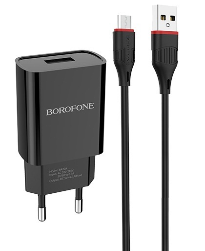 СЗУ BOROFONE BA20A, 1USB, 2.1A + MicroUSB 1м, черный
