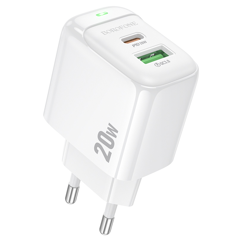 СЗУ BOROFONE BAS44A, 1USB/1Type-C, QC3.0+PD20W, 3А, белый