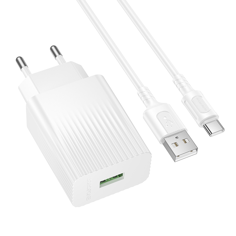 СЗУ BOROFONE BAS72A, 1USB, QC3.0 18W, 3A + Type-C 1м, белый