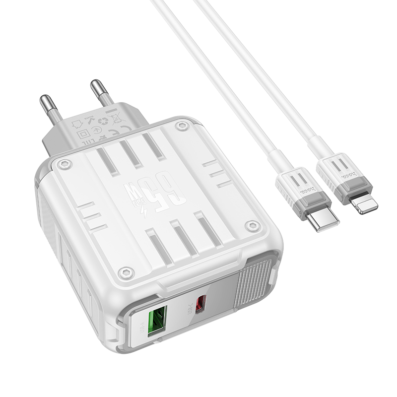 СЗУ Hoco C138A, 1USB/1Type-C, QC3.0+PD65W, 3A + Type-C/Lightning 1м, белый