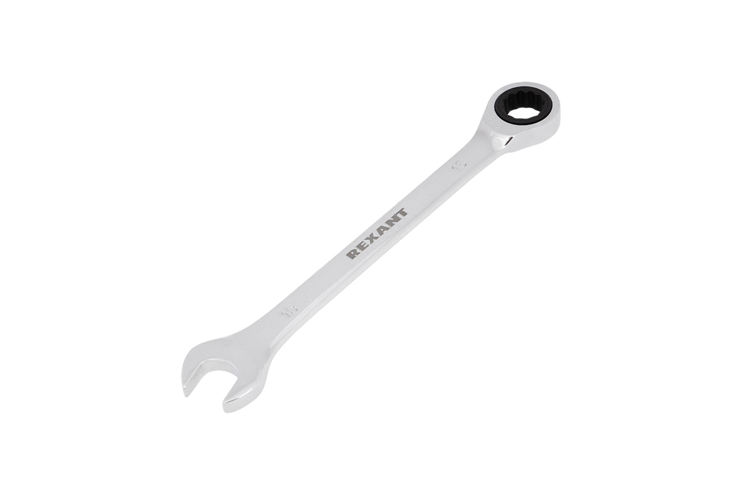 Ключ REXANT комбинированный трещоточный 15мм (зеркальный хром)