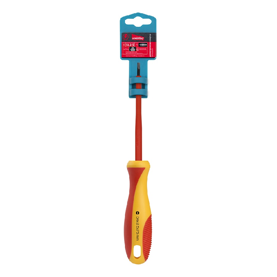 Отвертка Smartbuy SL2.5x75 диэлектрическая, шлицевая до 1000В, VDE, прорез.ручка