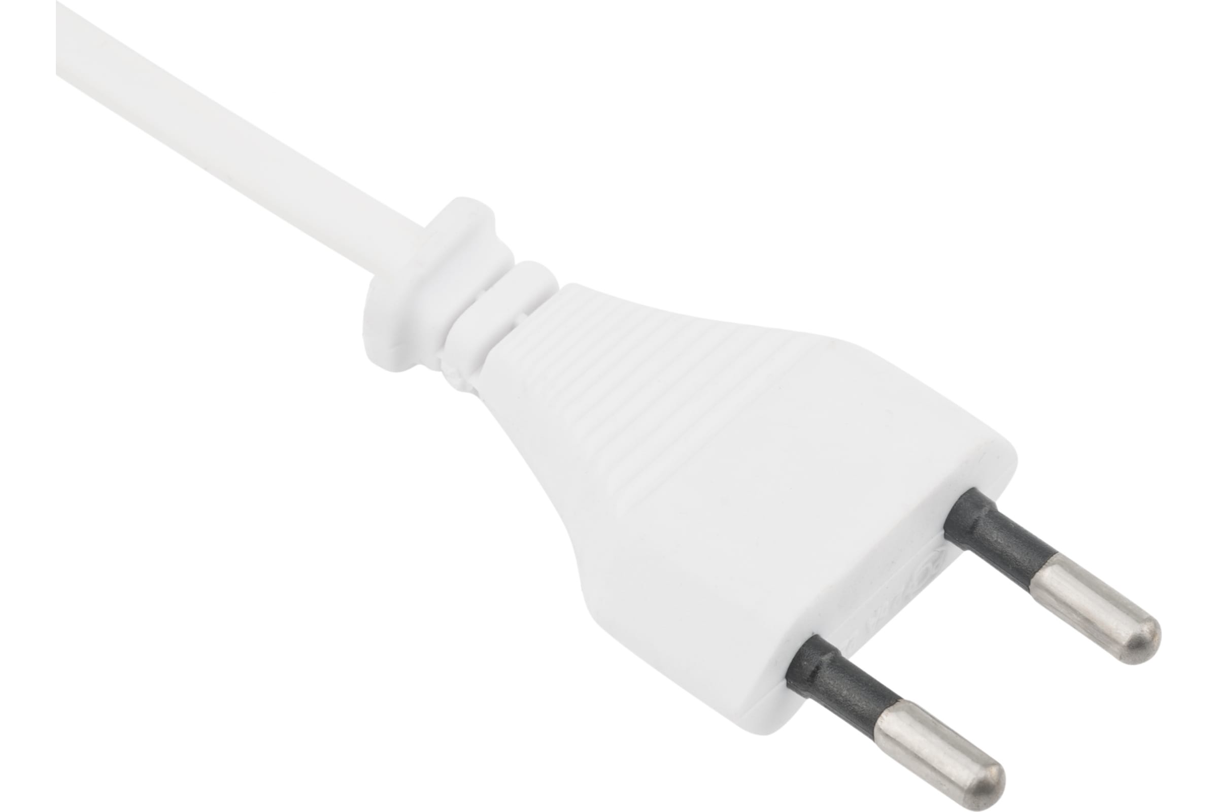Шнур сетевой 1.8 м без розетки белый REXANT предназначен для подключения к сети переменного тока (AC) с напряжением 220 B электроприборов напрямую (скруткой или клеммным соединителем), без использования розетки. Данный шнур состоит из двухжильного провода с сечением жил 0.5 мм², с одной стороны литой неразборной плоской вилки (евро), с другой — подготовленных (зачищенных и облуженных оловом) проводников.