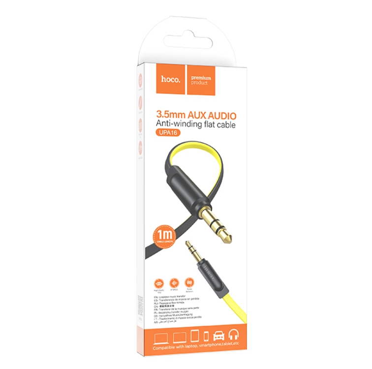Кабель AUX 3.5мм (шт/шт) 1м Hoco UPA16 плоский кабель, ТПЭ, желтый
