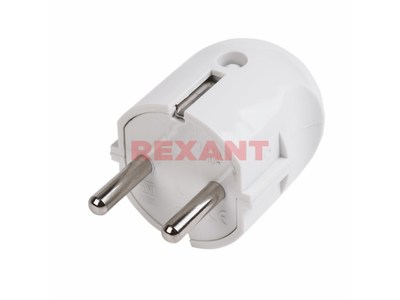 Вилка прямая 16А с/з, белый Rexant круг