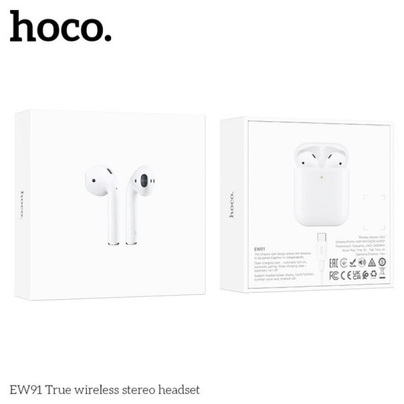 Гарнитура Bluetooth Hoco EW91, TWS, вкладыши, белый